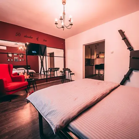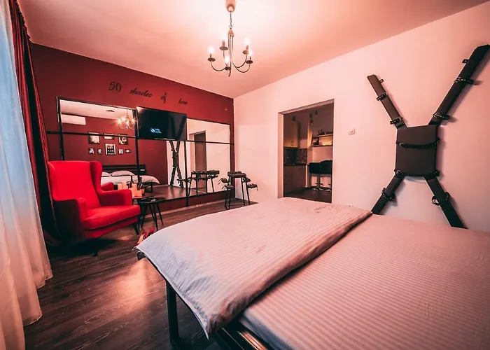 The 35 m² 50 Shades Of Love Timisoara apartment is located merely a 5-minute walk from the Kapa Shopping Center and looks out onto the garden.